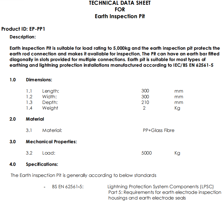 earthing and lightning protection installations manufactured according to IEC/BS EN 62561-5
